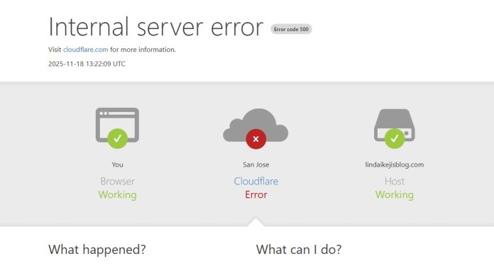- What caused this has been blamed on the Cloudflare: Cloudflare acknowledged the system-wide disruption, citing “Widespread 500 errors” and failures across its Dashboard and API. A 500 error indicates a generic internal server issue preventing access.
